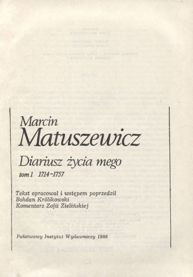 Diariusz życia mego. T. 1: 1714-1757. T. 2: 1758-1764 / tekst opracował i