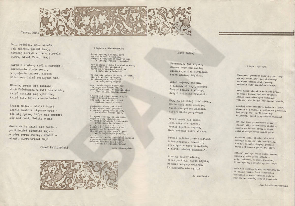 s. [2] cztery wiersze: Józef Relidzyński - Trzeci Maja; Anna Słonczyńska - I