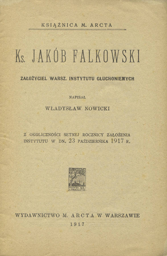Jakób Falkowski : założyciel Warsz. Instytutu Głuchoniemych. Warszawa 1917,
