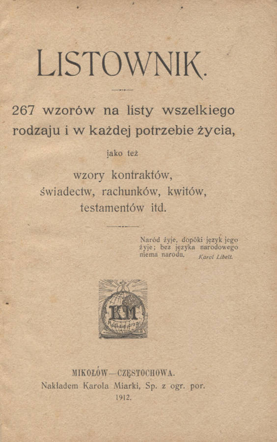 listy wszelkiego rodzaju i w każdej potrzebie życia, jako też wzory kontraktów,