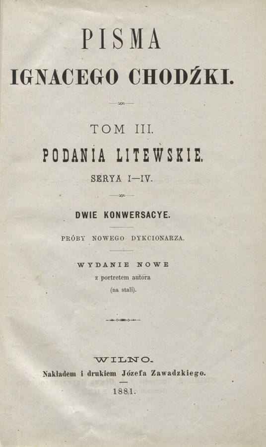 litewskie. Serya 1-4. Wyd. nowe. Wilno 1881, nakładem i drukiem Józefa