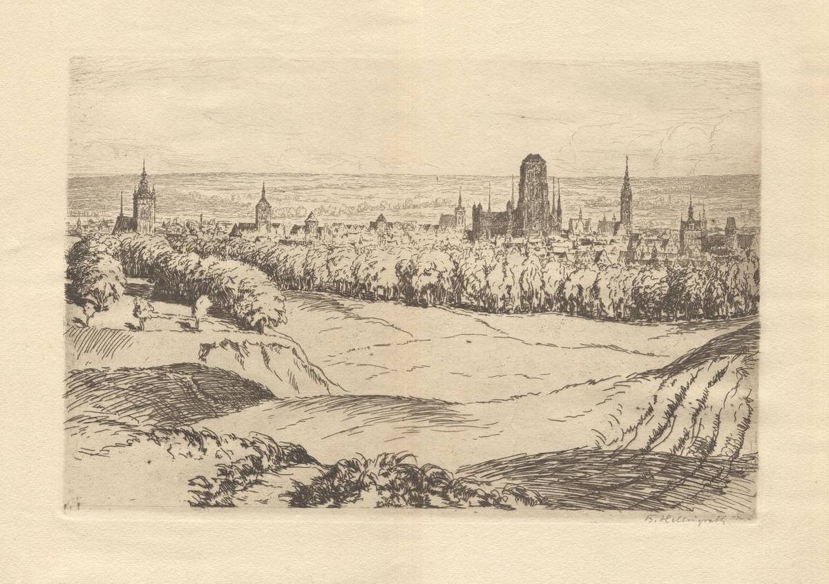 Berthold (1877-1954) – Panorama Gdańska. Akwaforta 20x30 cm, na arkuszu 34x48