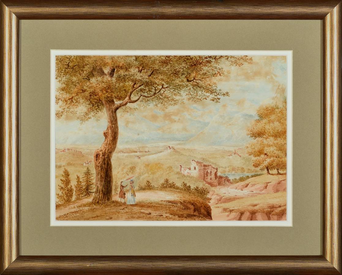 Pejzaż z postaciami. Akwarela