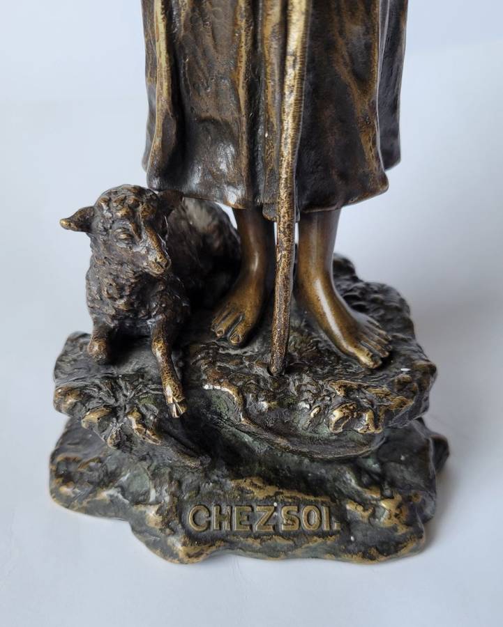 Kobieta z owcą. Brąz, lata 20-te XX w. Na podstawie sygnatura autorska: Ruff i