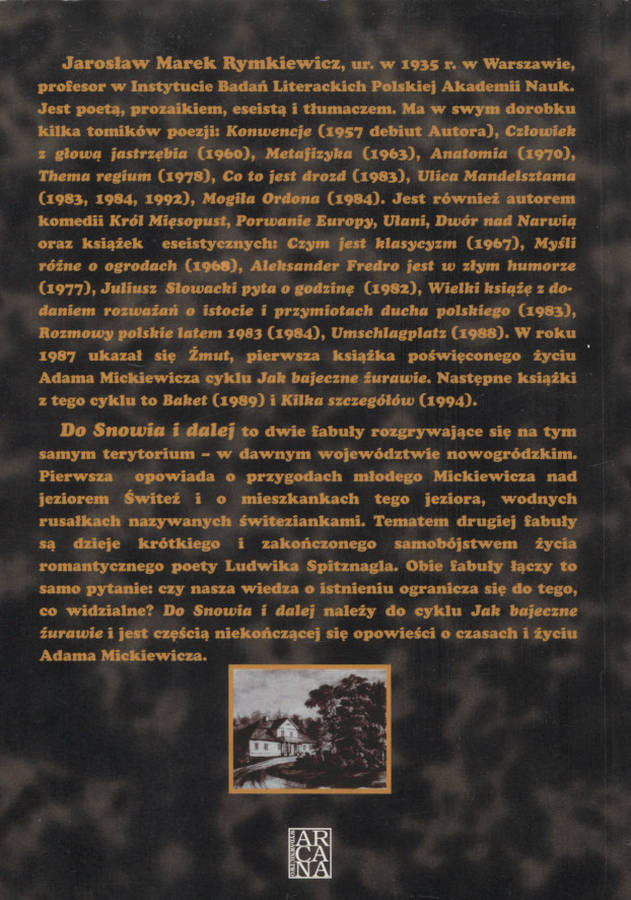 Rymkiewicz Jarosław Marek – Do Snowia i dalej… Wyd. 1. Kraków 1996, Wydawnictwo Arcana. 20 cm, s. 238, [1]. Jak Bajeczne Żurawie; t. 4.