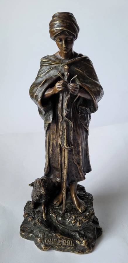Kobieta z owcą. Brąz, lata 20-te XX w. Na podstawie sygnatura autorska: Ruff i
