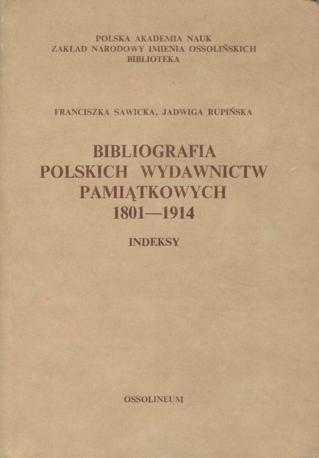 Rupińska Jadwiga – Bibliografia polskich wydawnictw pamiątkowych 1801-1914.
