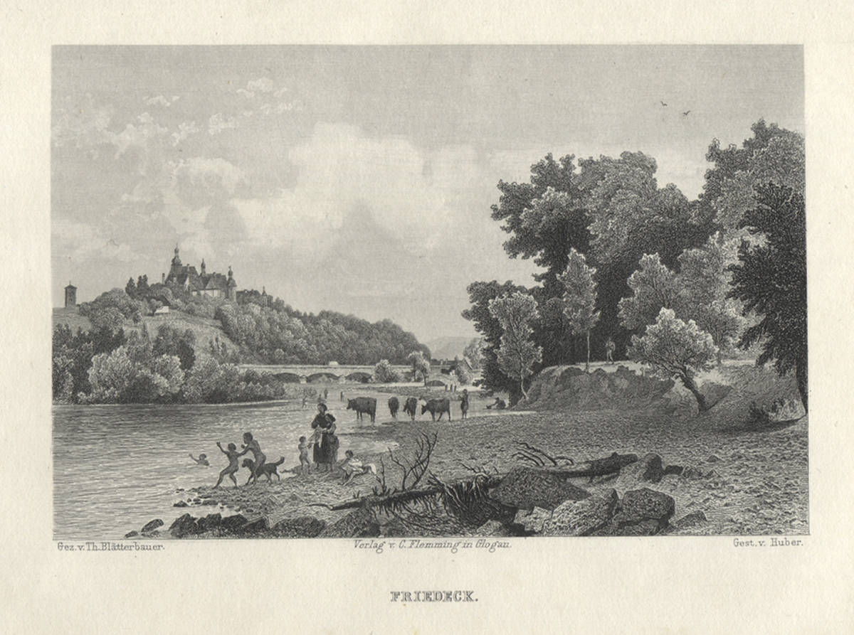 drzeworytów w romantycznej stylistyce z widokami miejscowości, zabytkowych