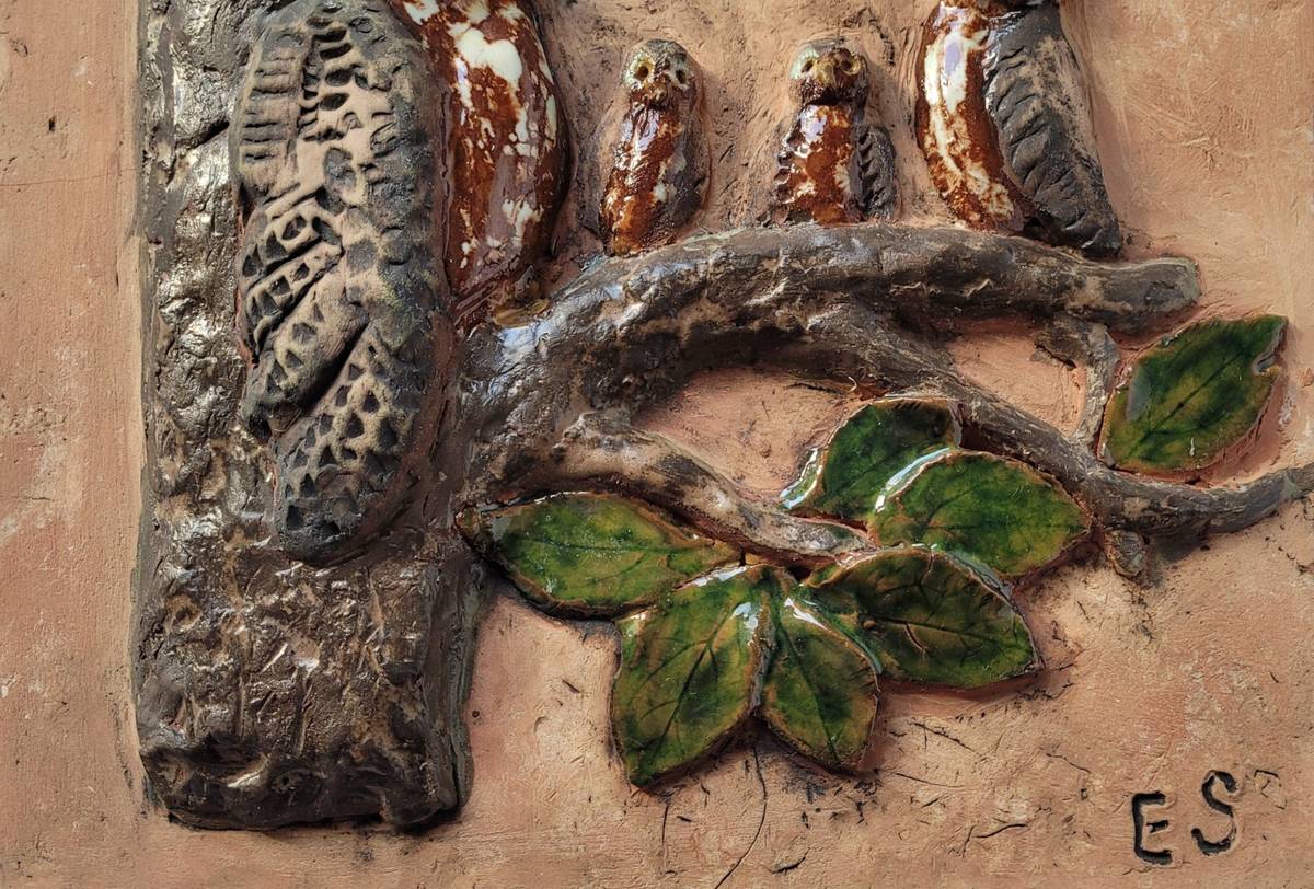– Plakieta ceramiczna. Płaskorzeźba sygnowana ES. Wymiary: długość 37,7 cm,