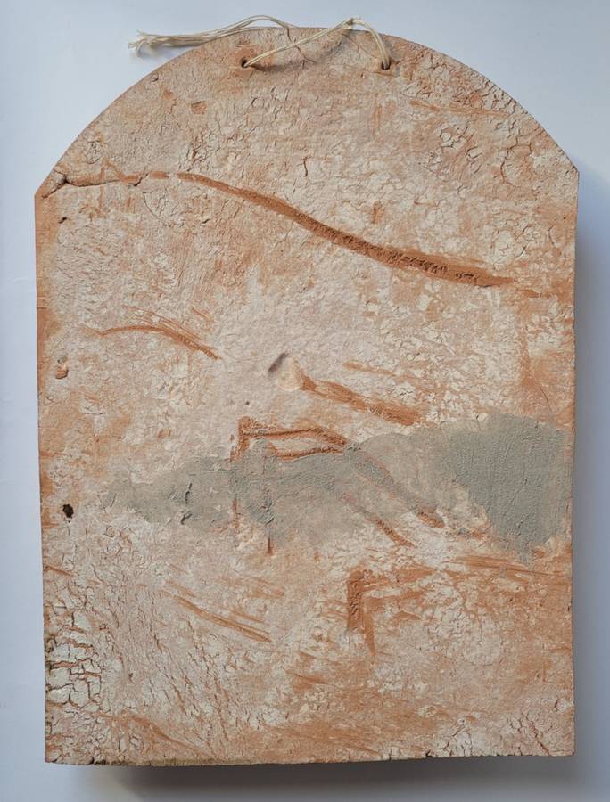 szerokość 28,5 cm, grubość 1,7 cm. Płaskorzeźba autorstwa rzeźbiarza i pedagoga