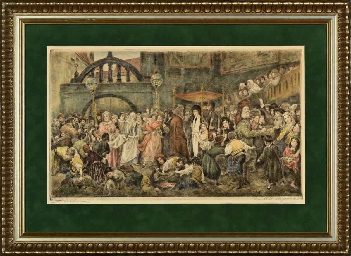 (1834-1917), według – Wesele żydowskie w Galicji. Akwaforta barwna 28x48 cm,