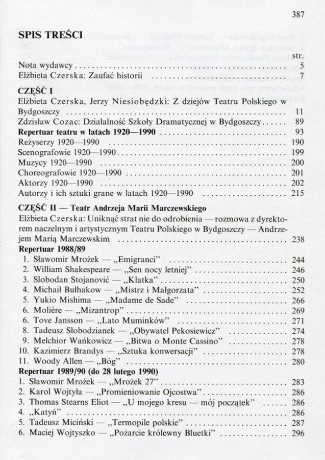 Teatr Polski w Bydgoszczy : almanach sceny bydgoskiej, 1920-1990 / opracowała Elżbieta Czerska. Wyd. 1. Bydgoszcz 1990, Teatr Polski. 23 cm, s. 388, ilustracje, oprawa plastik.
