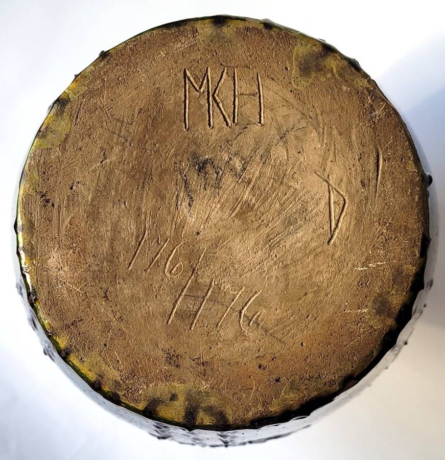 zielonego korpusu wazonu, pokryta glazurą. Sygnowany na spodzie wyrytymi: