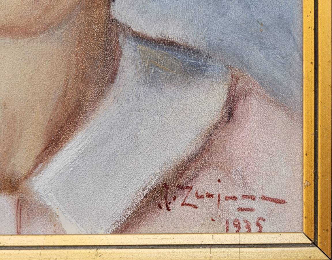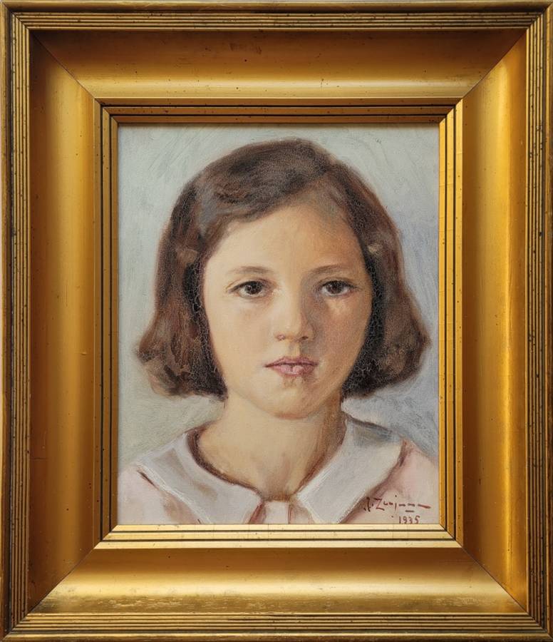 Portret dziewczynki. 1935. Olej na tekturze 28,5x23 cm, sygn. i dat. p. d.: J.