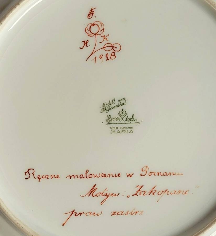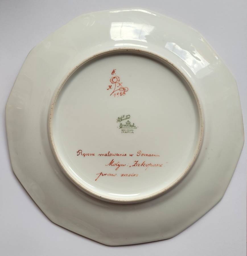 1928 r. Firma Rosenthal, model Maria, motyw Zakopane. W lustrze talerza