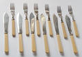 połowa XIX w. Stal nierdzewna, srebrzona, trzonki sztućców wykonane z iworyny.